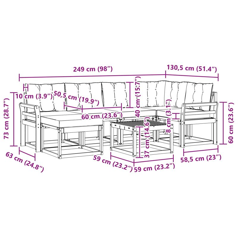 Този модерен комплект дивани променя начина, по който се отпускаме навън, с изчистени линии и прост дизайн. Изработен, за да бъде използван на открито, този комплект предлага комбинация от лесен стил и достатъчна функционалност. Текстурите и сладкият дизайн предлагат традиционен вид, а също така са практични в разнообразни открито пространства. Качествени материали : Комплектът е от здраво акациево дърво и текстил, избрани за дълготрайност и стилен вид. Дървото придава естествена текстура, която вдъхва уют, а текстилът е устойчив на времето, осигуряващ дълговечност на седалките. Функционални компоненти : Включва проектирани компоненти с ергономични подлакътници и поддържащи гърбове, за да добави комфорт. Текстилната седалка е лесна за поддръжка, устойчива на износване. Удобство : Насладете се на безпроблемна релаксация с дебелите възглавници, които предлагат комфорт за продължително сядане. Удобни ръкохватки и практична маса за дренаж също така увеличават функционалността за открито. Пригодност за различни пространства : Идеален за градини, патиа, дворове или крайбрежни зони. Независимо дали ли организирате събитие или просто искате да се насладите на есенното слънце, той е идеален за всякакви открити ситуации. Лесна поддръжка : Поддържането на този модерен комплект е лесно - просто избърсвайте с влажна кърпа. Минимизирайте износването с периодични обработки, за да поддържате дървото в отлично състояние през всички сезони.