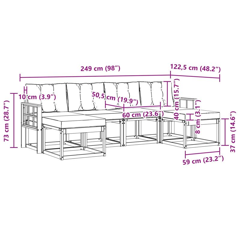 Комплектът за открито съчетава стил и функционалност, създавайки забележителен акцент навсякъде. Модерният дизайн, определен от чисти линии и минималистични детайли, добавя елегантност и подкрепя социалния живот и релаксация на открито. Направен е изцяло от масивна акациева дървесина, осигуряваща дълготрайност и визуална привлекателност. Перфектният избор за тези, които търсят практичност и стил в мебелите за открито. Издръжлива масивна акациева дървесина: Комплектът е известен със своята твърдост и устойчивост на атмосферни условия. Здравата конструкция гарантира надеждност и дълготрайност, а топлият естествен нюанс допълва атмосферата на всяка градина или тераса. Устойчив на климатични условия: Лакираната повърхност осигурява допълнителен защитен слой срещу слънце и дъжд. Полираното покритие помага да се запази как изглежда и как функционира, осигурявайки дълготрайност за твоите градини и тераси. Компоненти и дизайн: Всеки компонент е проектиран с мисъл за стил и удобство. Комфортът е в основата на дизайна, а съгласуваният стил предлага привлекателна визуална естетика за различни поводи. Комфорт и многофункционалност: Модулният дизайн позволява адаптиране към разнообразни нужди и пространства. Идеален за всякакви социални събирания или уединено четене, комплектът лесно се приспособява към всяка външна среда, повишавайки удобството и функционалността. Лесна поддръжка: За да държиш мебелите свежи, просто ги изтривай с влажна кърпа. Избягвай агресивни препарати. Редовната поддръжка помага да запазиш визията и удължава живота им.