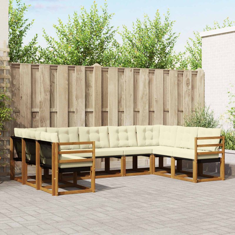Комплект дивани за открито 9 pcs Натурален и Крема