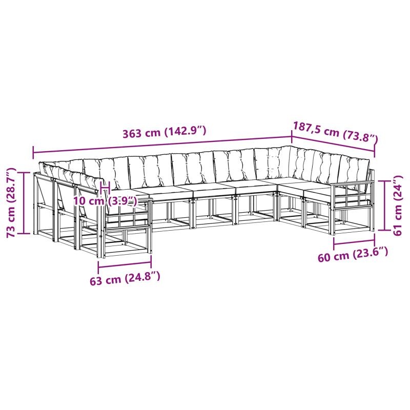 Комплект дивани за открито 10 pcs Натурален и Бежов