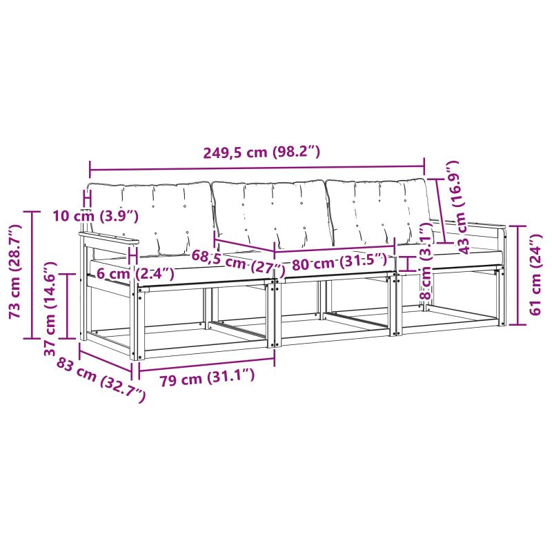 • 3 x Среден диван: 79 x 83 x 73 см (ДxШxВ)
