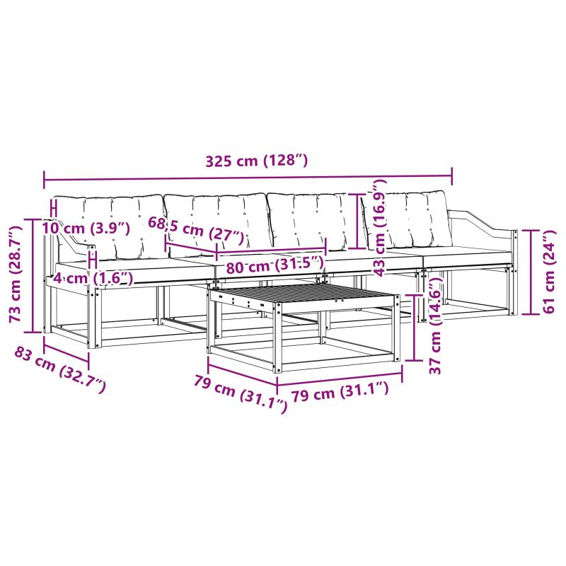 Outdoor комплектът за мебели съчетава стил и полезност, създавайки атрактивен център за всяка градина или тераса. Неговият модерен дизайн с чисти линии придава елегантност, докато също така подкрепя вашето outdoor време и социални събирания. Направен е изцяло от масивна акациева дървесина, осигурявайки дълготрайна устойчивост и привлекателност, което го прави идеален избор за търсещите изисканост и практичност в outdoor мебелите. Издръжлива масивна акациева дървесина: Този outdoor комплект мебели е изработен от здрава акациева дървесина, устойчива на outdoor условия. Солидната конструкция предлага стабилност и дълготрайност, а топлият естествен нюанс подобрява всяка градина или тераса. Устойчив на времето дизайн: Разполага с лакирана повърхност, която осигурява защита от слънце, дъжд и outdoor условия. Полираното покритие помага да запазите вида и функционалността му, осигурявайки дълготрайност за вашата градина или тераса. Компоненти и дизайн: Всяка част, от подлакътниците до облегалките, е проектирана с внимание и функция. Поддържащите функции осигуряват повече комфорт, а единния дизайн е визуално приятен за различни outdoor поводи. Комфорт и многофункционалност: Модулният дизайн предлага вариации за различни пространства и нужди. Идеален за релаксация, социализиране или сприятеляване, този комплект без усилие се адаптира към всяка outdoor среда, осигурявайки комфорт и полезност. Лесна поддръжка и обслужване: За да поддържате мебелите в добро състояние, почиствайте с влажна кърпа, избягвайте остри или абразивни почистващи средства. Редовната грижа ще продължи живота на мебелите.