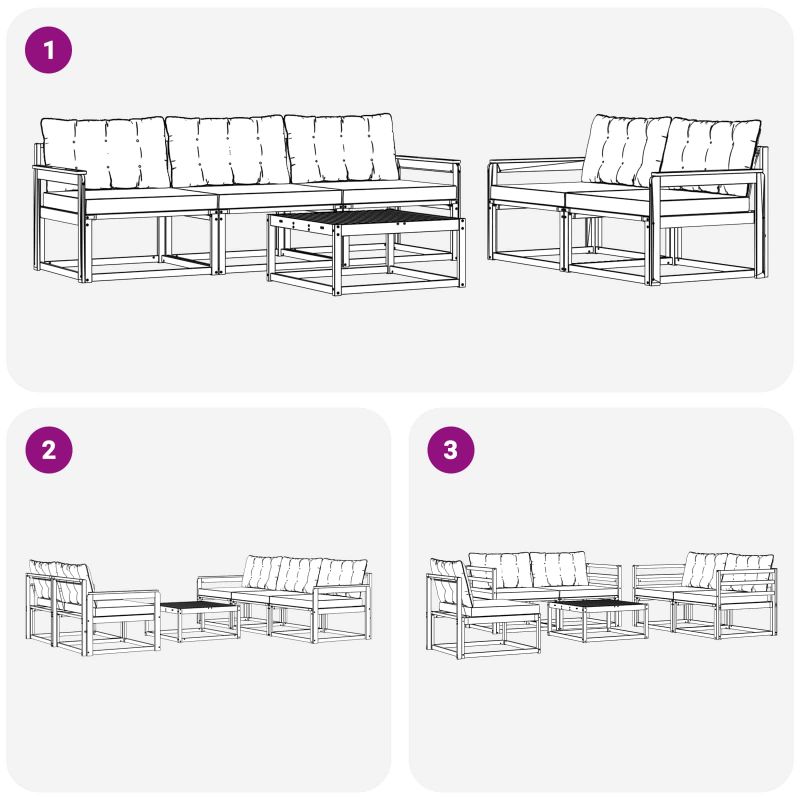 Този комплект градински мебели съчетава стил и практичност и става чудесен акцент за всяка градина или тераса. Модерният му дизайн с чисти линии и минимални детайли добавя елегантност, докато осигурява удобно място за релакс или социални събирания. Изработен е изцяло от масивно акациево дърво, което гарантира дълготрайност и приятно излъчване, перфектен е за всеки, който цени както удобството, така и изглеждането в градинските мебели. Издръжливо масивно акациево дърво: Този комплект мебели за градината е изработен от здраво акациево дърво, което е известен със своята устойчивост на външни условия. Здравата конструкция осигурява стабилност и дълготрайност, а топлият естествен цвят чудесно допълва всяка градина или тераса. Устойчив дизайн: Комплектът има лакирана повърхност, която добавя защита срещу слънце и малко дъжд. Полираното покритие помага на мебелите да запазят вида и функциите си, осигурявайки дълготрайна издръжливост. Компоненти и дизайн: Всеки детайл, от подлакътниците до облегалките, е обмислен за да комбинира стил и функция. Поддържащите елементи увеличават комфорта, а цялостният дизайн е визуално привлекателен и подходящ за различни поводи на открито. Комфорт и универсалност: Модулният дизайн позволява различни конфигурации според нуждите ти. Перфектен е за релакс, социални събирания или тихо четене и се адаптира лесно към всяко открито пространство. Лесна поддръжка: За да запазиш мебелите в отлично състояние, просто ги избърсвай с влажна кърпа и избягвай силни почистващи средства. Редовната поддръжка удължава живота им.
