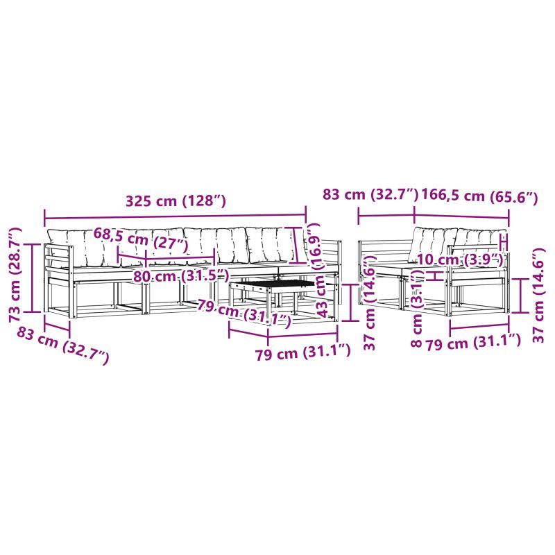 Този комплект мебели за външно ползване съчетава стил и функционалност, създавайки забележителен акцент за всяка градина или тераса. Със своите чисти линии и минималистичен дизайн, той добавя елегантност, като същевременно предоставя удобство за социални събирания и почивка на открито. Направен от масивно акациево дърво, комплектът предлага издръжливост и дълготрайна визуална привлекателност - идеален избор за тези, които търсят практичност и елегантен дизайн в мебелите за открито. Издръжливо масивно акациево дърво: Този комплект мебели за открито е известен със своята устойчивост на външни условия и дълготрайност. Неговата здрава конструкция предлага надеждна опора и стабилност, а природният тон допълва всяка градина или тераса. Дизайн, устойчив на атмосферни влияния: Лакираната повърхност на комплекта предлага допълнителна защита от слънце, дъжд и състояния на открито. Полираното покритие помага да се запази как функционалността, така и външността, осигуряваща дълготрайност за вашата градина, тераса или задния двор. Компоненти и дизайн: Всеки елемент, от подлакътниците до облегалките, е създаден с внимание към стила и функцията. Поддържащите функции добавят комфорт, докато целият дизайн създава визуално хармонично цяло, подходящо за всякакви външни събития. Комфорт и гъвкавост: Модулният дизайн позволява подредби, които отговарят на различни пространства и нужди. Перфектен за почивка или социални събирания, комплектът лесно се адаптира към всяка външна среда, максимизирайки комфорта. Лесна поддръжка: За да запазите мебелите в добро състояние, просто ги избърсвайте с влажна кърпа и избягвайте силни химикали. Редовната поддръжка ще удължи живота на мебелите.