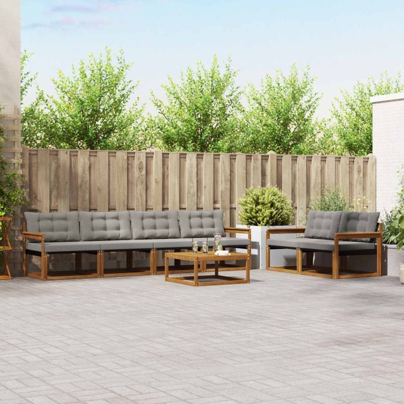 Този комплект мебели за външно ползване съчетава стил и функционалност, създавайки забележителен акцент за всяка градина или тераса. Със своите чисти линии и минималистичен дизайн, той добавя елегантност, като същевременно предоставя удобство за социални събирания и почивка на открито. Направен от масивно акациево дърво, комплектът предлага издръжливост и дълготрайна визуална привлекателност - идеален избор за тези, които търсят практичност и елегантен дизайн в мебелите за открито. Издръжливо масивно акациево дърво: Този комплект мебели за открито е известен със своята устойчивост на външни условия и дълготрайност. Неговата здрава конструкция предлага надеждна опора и стабилност, а природният тон допълва всяка градина или тераса. Дизайн, устойчив на атмосферни влияния: Лакираната повърхност на комплекта предлага допълнителна защита от слънце, дъжд и състояния на открито. Полираното покритие помага да се запази как функционалността, така и външността, осигуряваща дълготрайност за вашата градина, тераса или задния двор. Компоненти и дизайн: Всеки елемент, от подлакътниците до облегалките, е създаден с внимание към стила и функцията. Поддържащите функции добавят комфорт, докато целият дизайн създава визуално хармонично цяло, подходящо за всякакви външни събития. Комфорт и гъвкавост: Модулният дизайн позволява подредби, които отговарят на различни пространства и нужди. Перфектен за почивка или социални събирания, комплектът лесно се адаптира към всяка външна среда, максимизирайки комфорта. Лесна поддръжка: За да запазите мебелите в добро състояние, просто ги избърсвайте с влажна кърпа и избягвайте силни химикали. Редовната поддръжка ще удължи живота на мебелите.