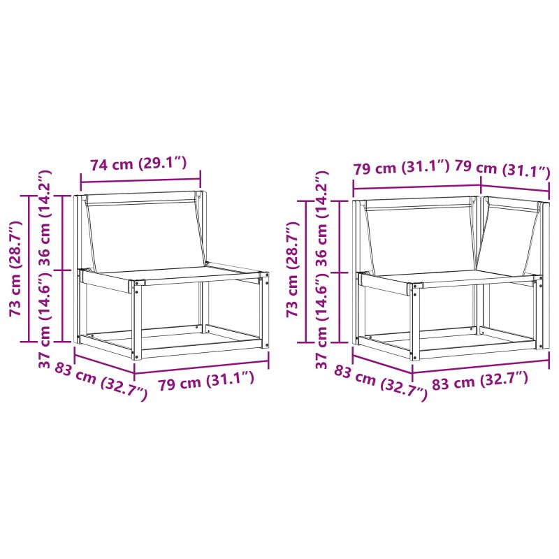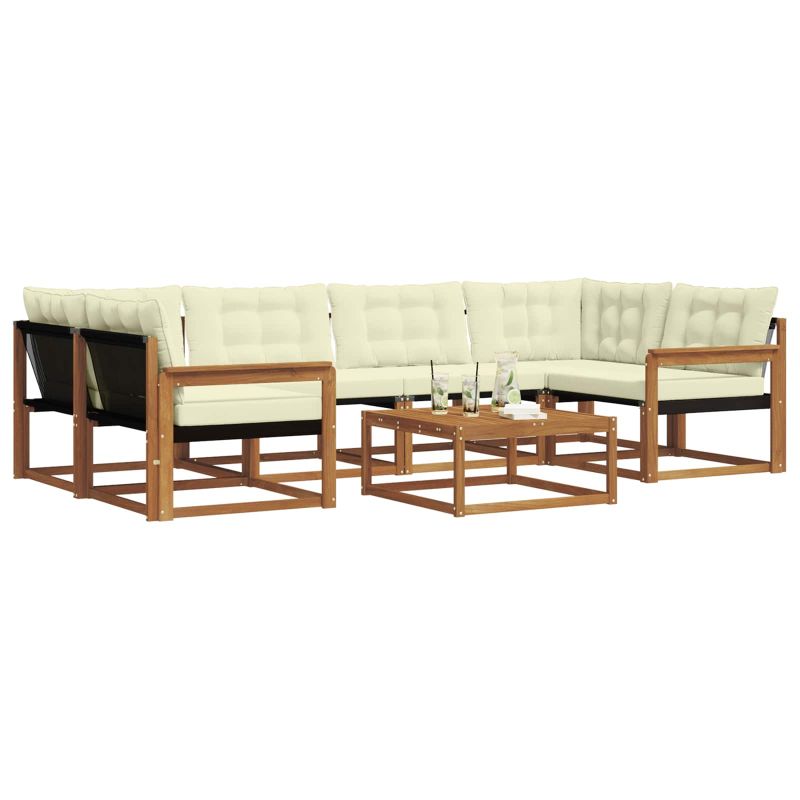 Този комплект за градински мебели комбинира стил и функция, създавайки впечатляваща част за всяка градина или тераса. Модерният му дизайн с изчистени линии и минималистичен вид внася елегантност, идеална за релаксиращи моменти и социални събирания. Изработен напълно от масивна акациева дървесина, комплектът осигурява дълготрайност и визуална привлекателност - перфектен за тези, които искат стил без компромиси с практичността. Издръжлив масивен акациев дървен конструкция: Изработен от масивно акациево дърво, този комплект мебели за открито е устойчив на всякакви метеорологични условия. Здравата му конструкция гарантира сигурност и дълготрайност, а топлият естествен цвят се вписва идеално в градината или на терасата. Устойчивост на времето: С лакирана повърхност, комплектът предлага защита от слънце и дъжд, запазвайки както външния си вид, така и функционалността дълго време. Компоненти и дизайн: Всяка част от комплекта - от подлакътниците до облегалките, е проектирана за стил и практичност. Поддържащите функции предлагат допълнителен комфорт, а съгласуваният дизайн гарантира естетичен вид, подходящ за всякакви поводи. Комфорт и разнообразие: С модулна структура, комплектът е супер гъвкав, идеален за тераси, открити събития или приятни моменти на четене. Лесно се настройва за максимален уют и удобство. Лесна поддръжка и грижа: За да запазиш мебелите в добро състояние, просто ги почиствай с влажна кърпа, без да използваш остри препарати. Редовната грижа запазва външния вид и увеличава срока на ползване.