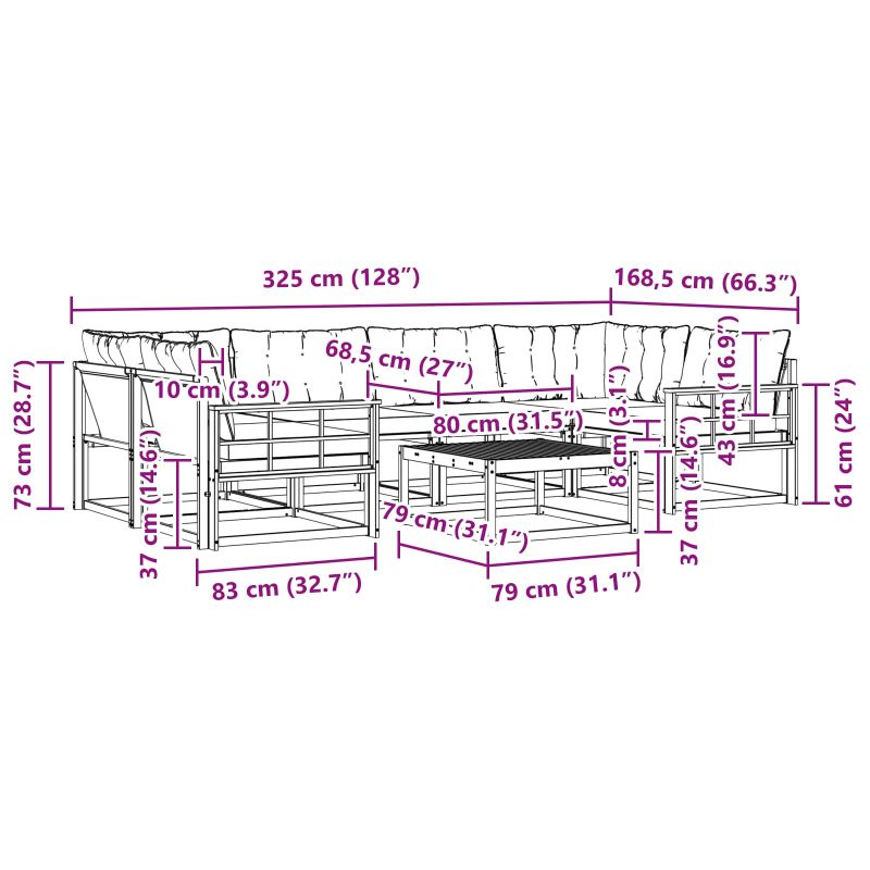 Този комплект за градински мебели комбинира стил и функция, създавайки впечатляваща част за всяка градина или тераса. Модерният му дизайн с изчистени линии и минималистичен вид внася елегантност, идеална за релаксиращи моменти и социални събирания. Изработен напълно от масивна акациева дървесина, комплектът осигурява дълготрайност и визуална привлекателност - перфектен за тези, които искат стил без компромиси с практичността. Издръжлив масивен акациев дървен конструкция: Изработен от масивно акациево дърво, този комплект мебели за открито е устойчив на всякакви метеорологични условия. Здравата му конструкция гарантира сигурност и дълготрайност, а топлият естествен цвят се вписва идеално в градината или на терасата. Устойчивост на времето: С лакирана повърхност, комплектът предлага защита от слънце и дъжд, запазвайки както външния си вид, така и функционалността дълго време. Компоненти и дизайн: Всяка част от комплекта - от подлакътниците до облегалките, е проектирана за стил и практичност. Поддържащите функции предлагат допълнителен комфорт, а съгласуваният дизайн гарантира естетичен вид, подходящ за всякакви поводи. Комфорт и разнообразие: С модулна структура, комплектът е супер гъвкав, идеален за тераси, открити събития или приятни моменти на четене. Лесно се настройва за максимален уют и удобство. Лесна поддръжка и грижа: За да запазиш мебелите в добро състояние, просто ги почиствай с влажна кърпа, без да използваш остри препарати. Редовната грижа запазва външния вид и увеличава срока на ползване.