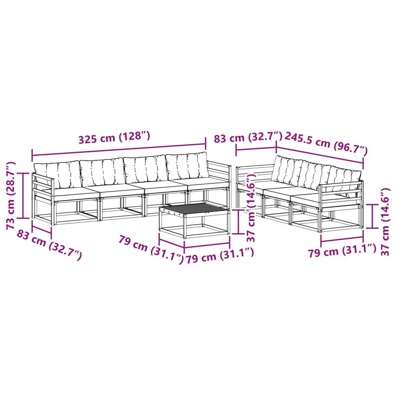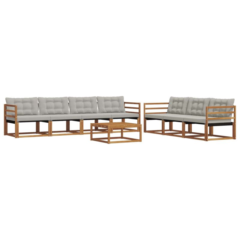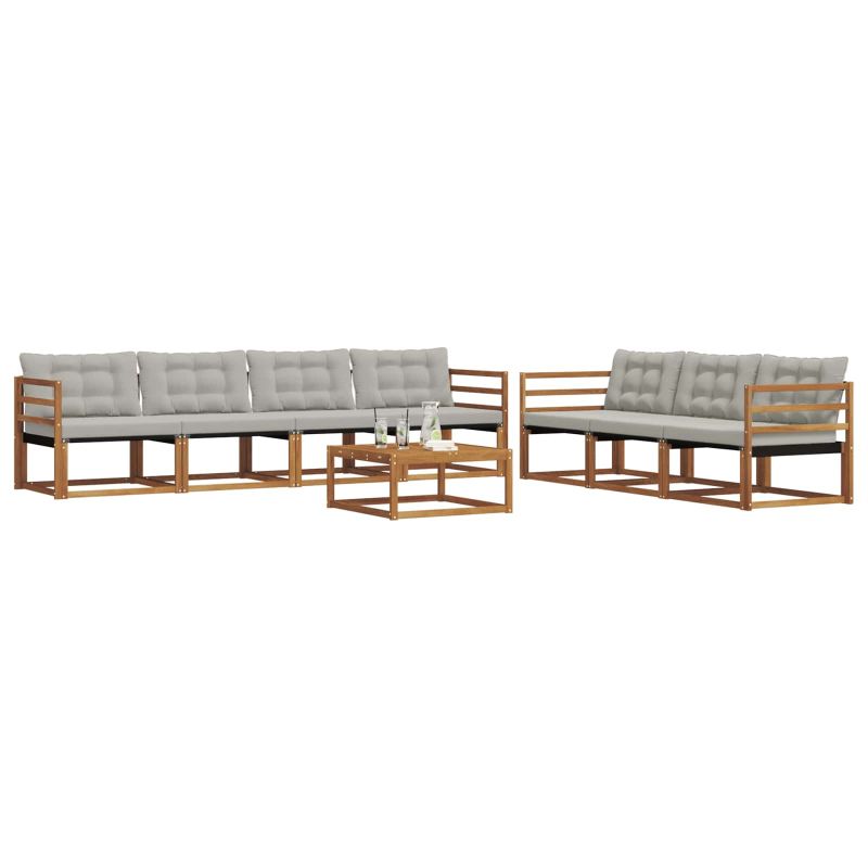 Комплектът за външни мебели съчетава стил и функционалност, придавайки страхотен акцент на всяка градина или тераса. Съвременният му дизайн с чисти линии добавя елегантност, но също така е удобен за релаксация. Изработен от масивна акациева дървесина, комплектът е здрав и дълготраен, идеален за тези, които ценят както практичността, така и добрия вкус. Издръжлива масивна акациева дървесина: Проектиран от масивна акациева дървесина, комплектът е устойчив на външни условия и предлага стабилност, докато топлият естествен тон обогатява всяка градина. Дизайн, устойчив на времето: Лакираната повърхност осигурява защита от слънце и дъжд, запазвайки визията и функционалността на мебелите за дълго. Компоненти и дизайн: Всеки елемент е проектиран с внимание към стил и комфорт, с естествена текстура, която допълва всяко открито пространство. Комфорт и многофункционалност: Модулният дизайн позволява различни конфигурации и е идеален за релаксация или социални събирания. Лесна поддръжка: Просто чистете с влажна кърпа и избягвайте абразивни препарати за дълготрайност.