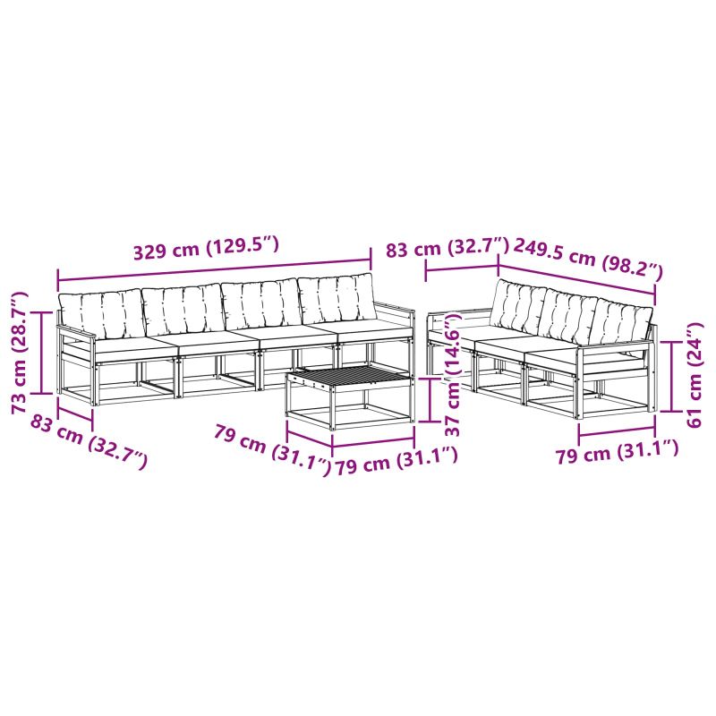 Комплектът за външни мебели съчетава стил и функционалност, придавайки страхотен акцент на всяка градина или тераса. Съвременният му дизайн с чисти линии добавя елегантност, но също така е удобен за релаксация. Изработен от масивна акациева дървесина, комплектът е здрав и дълготраен, идеален за тези, които ценят както практичността, така и добрия вкус. Издръжлива масивна акациева дървесина: Проектиран от масивна акациева дървесина, комплектът е устойчив на външни условия и предлага стабилност, докато топлият естествен тон обогатява всяка градина. Дизайн, устойчив на времето: Лакираната повърхност осигурява защита от слънце и дъжд, запазвайки визията и функционалността на мебелите за дълго. Компоненти и дизайн: Всеки елемент е проектиран с внимание към стил и комфорт, с естествена текстура, която допълва всяко открито пространство. Комфорт и многофункционалност: Модулният дизайн позволява различни конфигурации и е идеален за релаксация или социални събирания. Лесна поддръжка: Просто чистете с влажна кърпа и избягвайте абразивни препарати за дълготрайност.