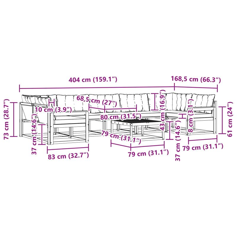 Този диван комплект е проектиран за открито и е съчетание от стил и практичност, което го прави идеален за градини и тераси. Със съвременен вид и чисти линии, предлага гъвкаво решение за всякакви събирания на открито. Красивият кафяв нюанс и текстурата на дървото придават елегантност, а независимо дали организирате парти или просто искате да се отпуснете под звездите, комплектът може лесно да бъде адаптиран според нуждите ви. Материали и завършек Изработен от масивна акациева дървесина и текстил, този диван комплект съчетава визия и практичност. Акациевото дърво е устойчиво на климатични условия, а текстилът е издръжлив и не избледнява, за да изглежда добре през цялата година. Включени компоненти Комплектът включва удобни части с поддържащи облегалки и подлакътници. Модулният дизайн позволява лесно да променяте местоположението на мебелите за всякакви поводи. Функции и функционалност Лесен за почистване и устойчив на избледняване, комплектът е създаден с мисъл за комфорт и удобство. Циповете на възглавниците улесняват поддръжката, което прави живота ви по-лесен и стилен. Препоръчителни употреби Идеален за градини и тераси, комплектът се вписва перфектно във всяка модерна среда. Може да се използва както в домове, така и в комерсиални обекти. Поддръжка и грижа Поддържането е лесно: просто избършете с влажна кърпа. При лошо време, покриването е препоръчително, но не е задължително. Такава рутинна грижа осигурява дълготрайност и привлекателност.