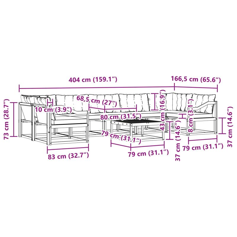• 5 x Среден диван: 79 x 83 x 73 см (ДxШxВ)