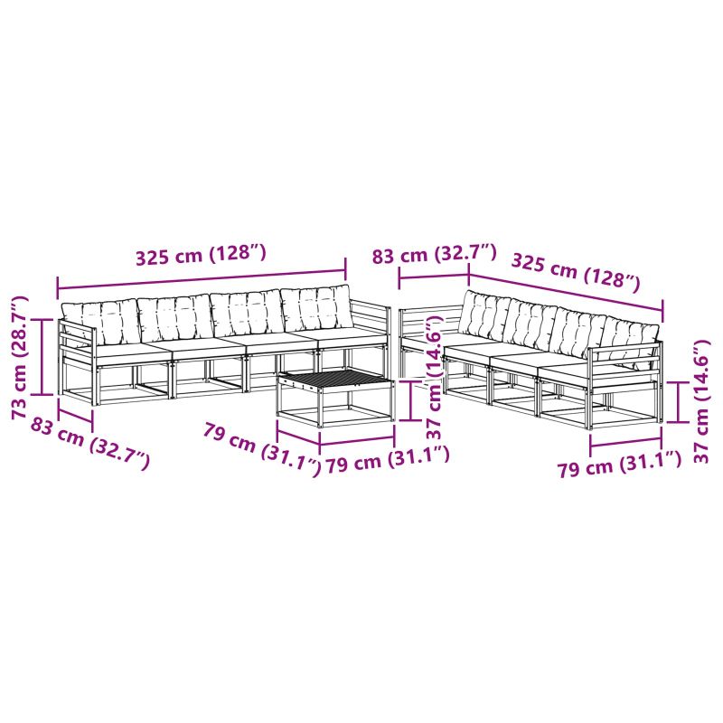 • 8 x Среден диван: 79 x 83 x 73 см (ДxШxВ)