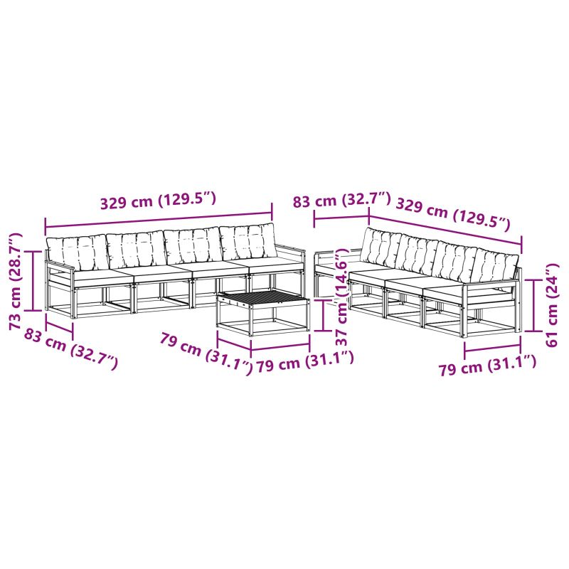 Комплект дивани за открито 9 pcs Естествено и светло сиво