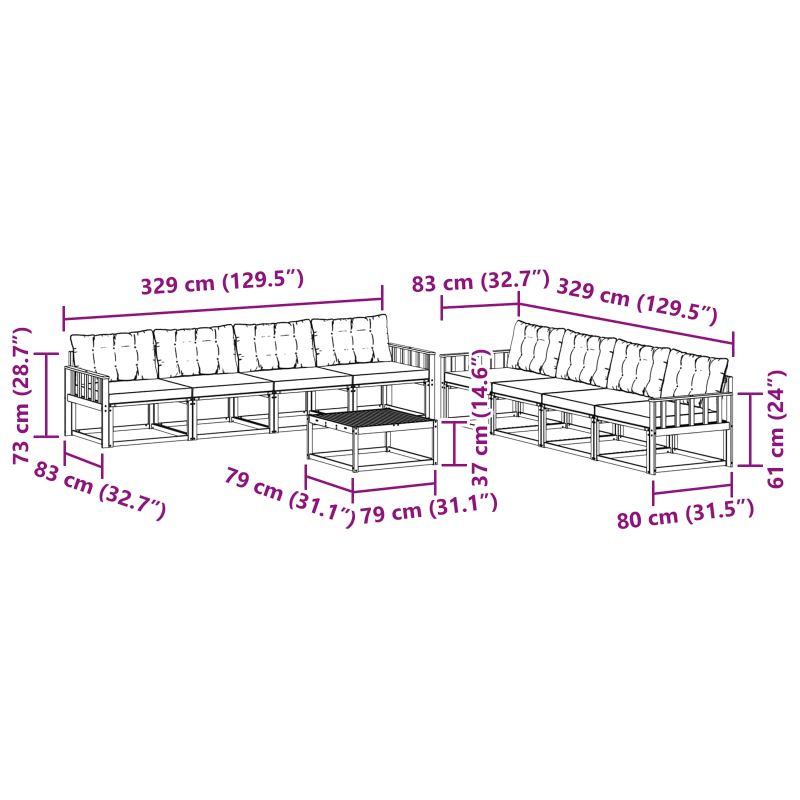 Комплектът за градина комбинира стил и практичност, създавайки уникална централна част за всяка градина или тераса. Модерният дизайн с чисти линии и минималистичен вид добавя елегантност, като подкрепя релаксацията и социалните събирания на открито. Направен от масивна акациева дървесина, комплектът гарантира дълготрайна издържливост и визуална привлекателност, което го прави идеален за хора, които ценят комбинация от практичност и елегантност в градинските мебели. Издръжлива основа от масивна акациева дървесина: Произведен от масивна акациева дървесина, този комплект е устойчив на външни условия. Здравата конструкция предлага надеждна поддръжка и дълготрайна стабилност, а топлите натурални тонове подобряват всяка градина или тераса. Устойчив на атмосферни влияния: Комплектът мебели има лакирана повърхност, която осигурява защита от слънце, дъжд и всякакви метеорологични условия. Полираното покритие помага да се запази с добър вид, осигурявайки дълготрайна устойчивост за вашата градина, тераса или двор. Компоненти и дизайн: Всеки елемент, от подлакътниците до облегалките, е проектиран с мисъл за стил и уют. Функциите за поддръжка добавят допълнителен комфорт, докато координираният дизайн предлага визуално хармонично излъчване, идеално за различни външни събития. Комфорт и многофункционалност: Модулният дизайн позволява различни конфигурации, които отговарят на нуждите на различни пространства. Перфектен е за релаксация, социални срещи или тихи моменти с книга, комплектът без проблеми се адаптира към всяка външна обстановка, увеличавайки комфорта и полезността. Лесна поддръжка: За да поддържате мебелите в добро състояние, просто избърсвайте повърхностите с влажна кърпа и избягвайте абразивни почистващи средства. Редовната поддръжка помощ за запазване на добрия вид и удължаване на живота на мебелите.