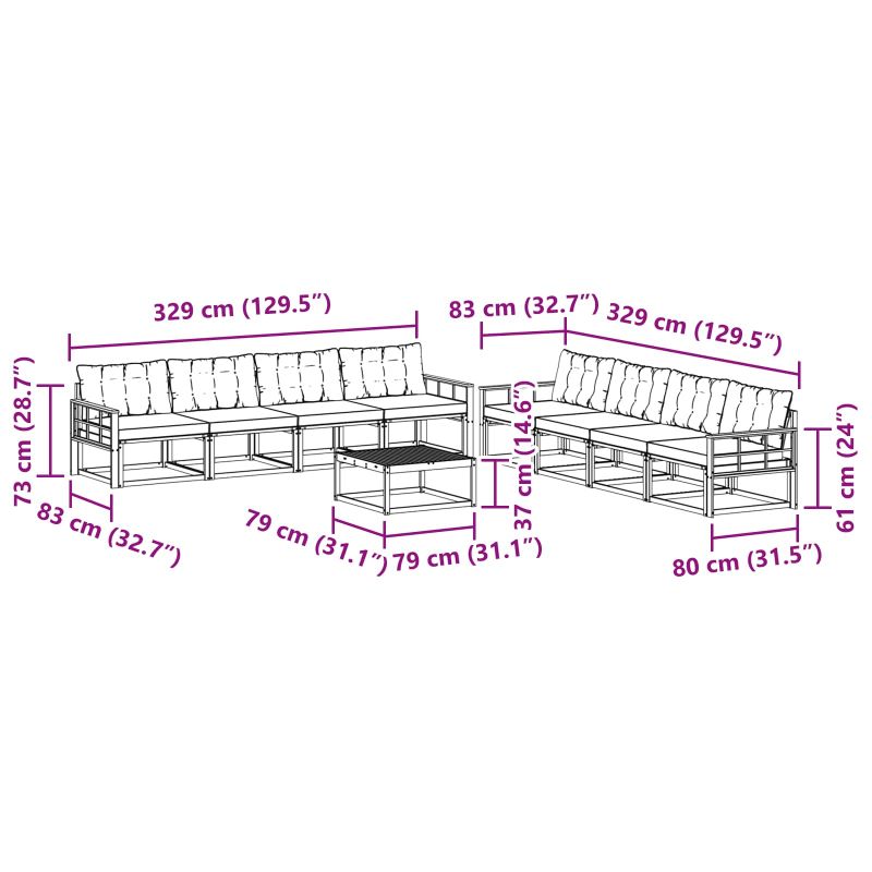 Комплект дивани за открито 9 pcs Естествено и черно