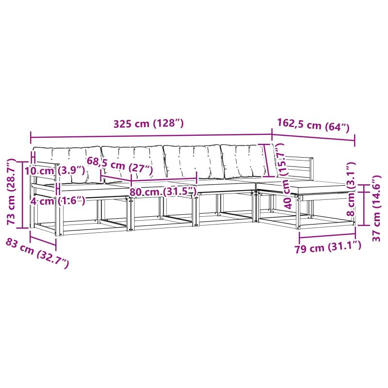 • 4 x Среден диван: 79 x 83 x 73 см (ДxШxВ)