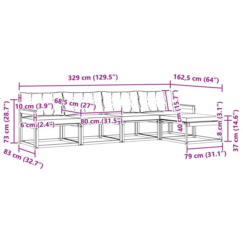 • 4 x Среден диван: 79 x 83 x 73 см (ДxШxВ)