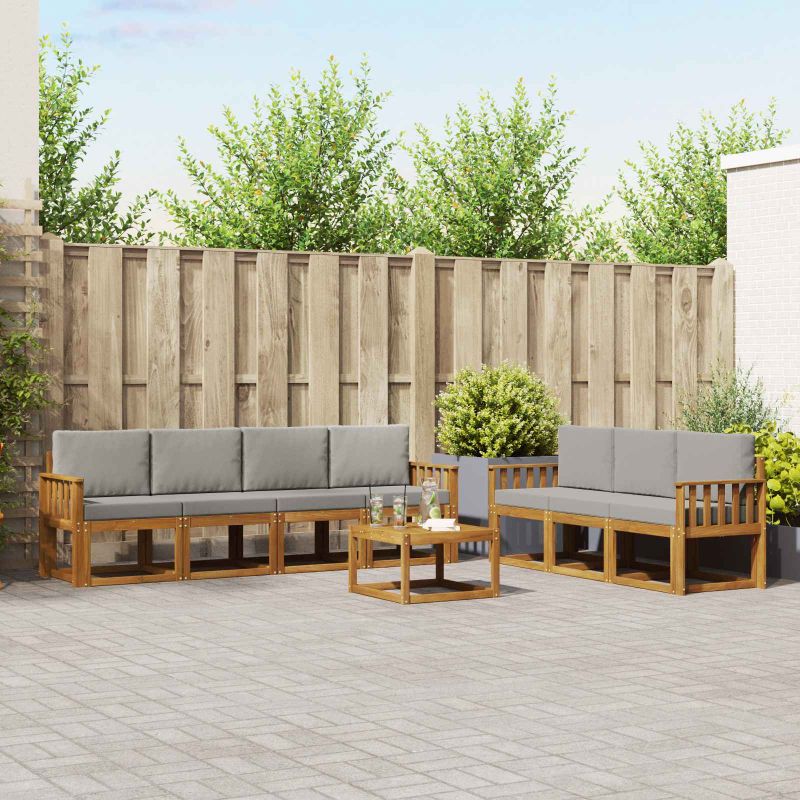 Outdoor мебелният комплект съчетава стил и практичност, създавайки акцент за всяка градина или тераса. Модерният му дизайн с изчистени линии и минималистични детайли добавя елегантност, докато предоставя комфорт по време на outdoor отдиха. Направен е изцяло от масивна акациева дървесина, като предлага дълготрайност и добър вид, което го прави чудесен избор за практичност и стил в outdoor мебелите. Издръжлива масивна акациева дървесина: Този outdoor комплект е направен от масивна акациева дървесина, известна със своята издръжливост и устойчивост на outdoor условия. Здравата конструкция гарантира стабилност и дълготрайност, а топлият тон добавя чар на всяка градина или тераса. Устойчив на времето дизайн: Комплектът има лакирана повърхност, която предлага допълнителна защита срещу слънце и леки дъждове. Полираното покритие спомага за запазване на външния вид и функцията, осигурявайки дълготрайност за вашето outdoor пространство. Компоненти и дизайн: Всеки компонент, от подлакътниците до гръбчетата, е проектиран с мисъл за стил и удобство. Поддържащият гръб осигурява комфорт, а целият дизайн е визуално хармоничен, подходящ за всякакви outdoor ситуации. Комфорт и многофункционалност: Модуларният дизайн позволява гъвкави конфигурации, които да отговорят на различни нужди. Идеален за релакс или социални събирания, комплектът се адаптира лесно към всяко outdoor пространство и предлага максимален комфорт. Лесно поддържане: За да запазите мебелите в добро състояние, просто ги избърсвайте с влажна кърпа, без груби почистващи средства. Редовната поддръжка помага да се запази видът им и удължава срока на експлоатация.