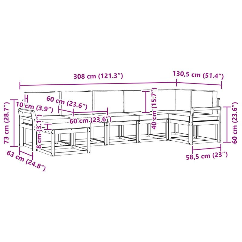 • 7 х възглавница за седалка: 60 x 60 x 8 см (Д x Ш x В)