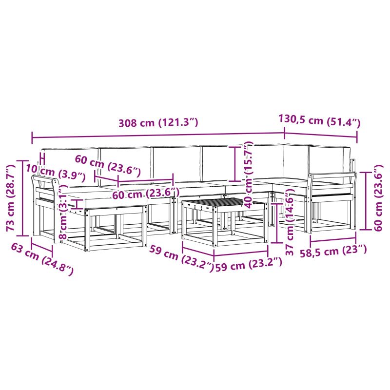 • 7 x Възглавница за облегалка: 60 x 40 x 10 см (Д x Ш x В)
