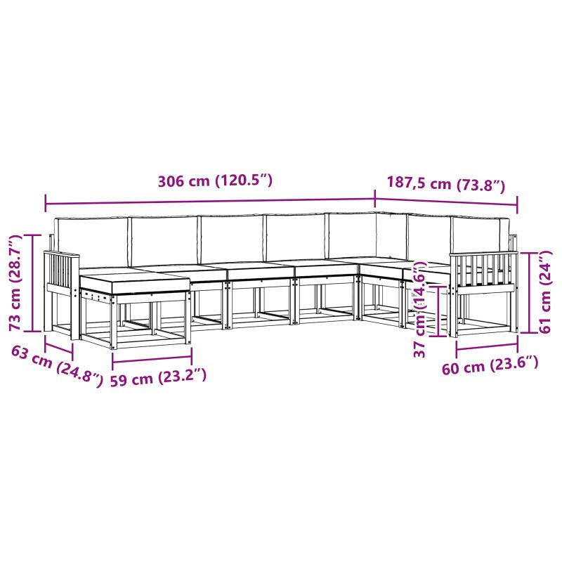 • 8 x възглавница за седалка: 60 x 60 x 8 см (Д x Ш x В)