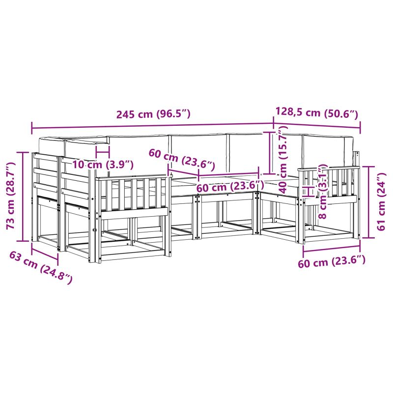 Този стилен комплект секционен диван за открито е създаден, за да ви предложи комфорт и стил в градината или на патиото. Неговият модерен дизайн, с чисти линии и елегантен профил, предлага шикозна и практична конфигурация за сядане, идеална за релаксация или забавления с приятели на двора. Кафявите нюанси на комплекта допълват неговата елегантност и се сливат прекрасно с всяко външно пространство. Здрава конструкция: Изработен от масивно акациево дърво, този комплект дивани е направен да устои на атмосферните условия и да служи дълго време. Акациевото дърво е здраво и приятно на вид, правейки го често срещан избор за градински мебели. Модулен дизайн: Комплектът предлага модулна конфигурация, което означава, че можете да пренаредите частите, когато пожелаете. Независимо дали организирате градинско парти или искате да се насладите на уютна вечер, гъвкавият дизайн отговаря на различни нужди за сядане. Удобство: Всички части имат стабилни рамки и предлагат удобна опора. Дървесните подлакътници подсилват здравината и естествената красота, добавяйки комфорт към вашето изживяване на открито. Лесна поддръжка: Поддържането на този комплект е просто. Достатъчно е да го избършете с влажна кърпа, за да премахнете прах и замърсявания. За да удължите живота му, използвайте покривало, когато не се използва и не го оставяйте на пряка слънчева светлина, за да запазите свежия му вид. Универсално приложение: Идеален за градини, патиота, задни дворове или около басейни, комплектът е с елегантен дизайн и топли цветове, които лесно се вписват в всяко обстановка, правейки го прекрасно допълнение за вашето външно пространство.