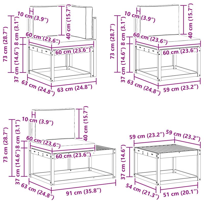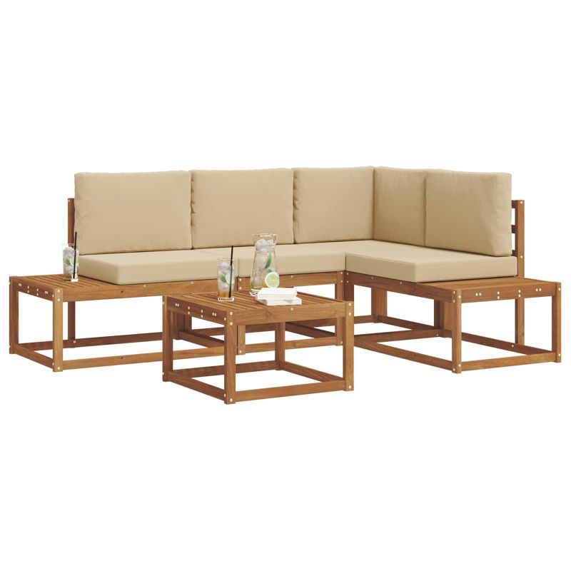 Комплектът мебел за външно ползване съчетава стил и практичност, създавайки впечатляваща акцентна част за всяка градина или тераса. Модерният му дизайн, с чисти линии и минимални детайли, внася елегантност, осигурявайки уютни моменти на спокойствие и социални събирания на открито. Изработен изцяло от масивна акациева дървесина, този комплект е здрав и изглежда добре, подходящ за онези, които търсят както практичност, така и стилен дизайн за открито. Издръжлив масивен акациев дървен каркас: Този комплект за открито е изработен от масивна акациева дървесина, известен с дълготрайността си и устойчивостта на атмосферни условия. Стойката му осигурява стабилност, а топлият естествен цвят подобрява всяка градинска или терасна обстановка. Устойчив дизайн на времето: Този комплект има лакирана повърхност за допълнителна защита от слънце, лека дъжд и външни условия. Полираното покритие помага да се запази добрия вид и функция, гарантирайки дълготрайна издръжливост за вашата градина или тераса. Компоненти и дизайн: Всяка част от дивана е проектирана с внимание за стил и функционалност. Поддържащите характеристики осигуряват комфорта, а съгласуваният дизайн гарантира визуално единство, подходящо за всякакви открити поводи. Комфорт и многофункционалност: Модулният дизайн позволява различни конфигурации, подходящи за различни нужди и пространства. Перфектен за релаксация, социални събирания или уединено четене, комплектът лесно се адаптира към всяка открита среда, максимизирайки комфорта и полезността. Лесна поддръжка: За да поддържате мебелите в добро състояние, почиствайте с влажна кърпа и избягвайте остри или абразивни почистващи средства. Редовната грижа помага да се запази привлекателността и удължава времето на употреба на мебелите.