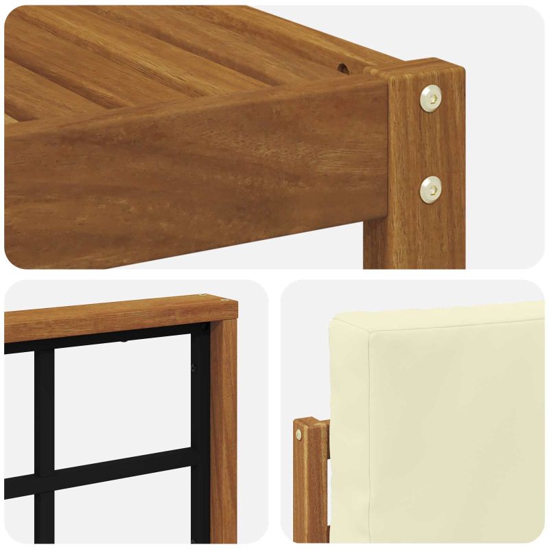 Този комплект дивани за открито е проектиран, за да съчетава удобството и модерния стил, което го прави идеалното място за срещи в градината, на патиото или около басейна. Състои се от здрави елементи от акациево дърво, комплектът показва модерен чар, с ясни линии и минималистичен подход. Подходящ е не само за интимни събирания, а и за по-големи събития, позволявайки ви да нагласите местата за сядане според нуждите. Топлият кафяв цвят плавно се вписва в природата и придава елегантен вид на всяко открито пространство. Масивно акациево дърво Целият комплект дивани е изработен от здраво акациево дърво, известно с устойчивостта си на метеорологични условия. Красивият кафяв завършек придава допълнителен стил, а материалът гарантира дълготрайност. Модулна конфигурация С модулния дизайн, вие имате възможност да пренаредите местата си с лекота. Можете да настройвате или да комбинирате елементите, за да отговарят на нуждите ви. Здрава облегалка с ламели Тази облегалка е проектирана да бъде стабилна и удобна, като същевременно придава традиционен вид на комплекта. Не променя формата си, осигурявайки на потребителите отлична поддръжка. Лесна поддръжка Поддръжката на този комплект изисква минимални усилия - просто покривайте го, когато не го използвате, и избягвайте прекалено дълго излагане на слънце, за да запазите вида му. Изисква се сглобяване Процесът на сглобяване е проектиран да бъде лесен и да изисква само основни инструменти. Два души, които работят заедно, могат бързо да превърнат компонентите в завършен продукт.