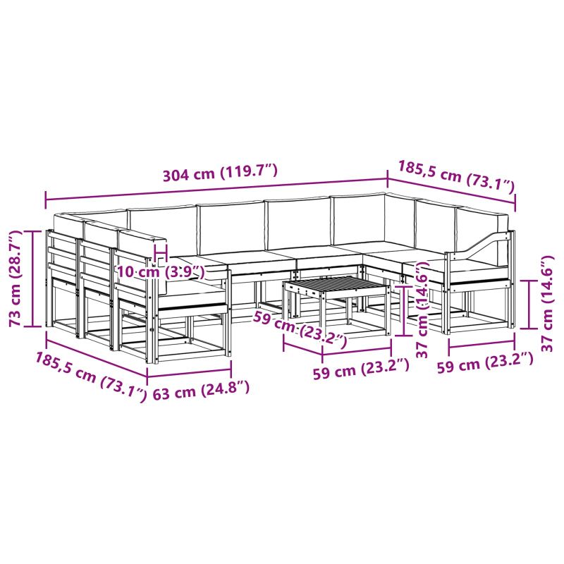 Този комплект диван за открито е създаден да съчетава комфорт и стил, което го прави идеалното място за събирания в градината, на патиото или около басейна. Изработен е от здрави акациеви елементи и предлага модерен вид с прости линии и минималистичен дизайн. Подходящ е за интимни сбирки или големи събития, като ви позволява да пренареждате местата според нуждите. Топлият кафяв цвят се вписва добре в природата и добавя стил на откритите площи. Материал от масивно акациево дърво Целият комплект е изработен от масивно акациево дърво, което е известно с издръжливостта си. То осигурява стабилност и остава в добро състояние, дори навън. Богатият кафяв цвят добавя изисканост, без да губи естетика. Модулна конфигурация Можете лесно да персонализирате подредбата на местата. Независимо дали просто редите един елемент или организирате голямо парти, модулите предлагат необходимата гъвкавост. Здрав слепен гръб Дизайнът с фиксирана рамка предлага стабилност и поддръжка. Слепият гръб съчетава традиционен вид и надеждност, за да гарантира, че интересите на потребителите са на първо място. Лесна поддръжка Просто покривайте дивана, когато не го използвате, и го изтривайте с влажна кърпа. Избягвайте да го оставяте на пряка слънчева светлина, за да запазите цвета му. Изисква сглобяване Сглобяването изисква двама души и основни инструменти, като отвертки. Процесът е прост и преходът от компоненти до завършен продукт е гладък, което ще ви помогне да преобразите outdoor пространството бързо.