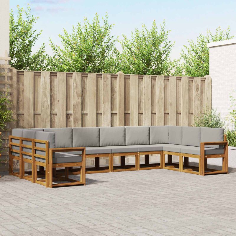 Този секционен диван за открито додава модерен шик на вашата патия или градина с чист дизайн, вдъхновен от простотата и функционалността. Умело изработен от солидна акациева дървесина, стилната рамка е допълнена от решетъчно гръбче и топли кафяви тонове, които перфектно се вписват в откритите пространства. Създаден за комфорт и универсалност, този комплект предлага приятно място за отмора или забавление на гости. Наслаждавайте се на алфреско изживяване с поглед към басейна или си създайте уютно място в задния двор с този гъвкав диван. Солидна акациева дървесина: Конструкцията на този диван е направена от здрава акациева дървесина, известна с дълготрайността си и устойчивостта на различни метеорологични условия, осигурявайки дългогодишна употреба на открито. Всяка част има топъл кафяв оттенък, който подчертава естествената му красота и добавя уют на вашето градинско пространство. Модулен дизайн: Модулната схема позволява гъвкава пренастройка, за да отговори на различни предпочитания за сядане, идеално за персонализиране спрямо броя на гостите и вида на събитието. Организирайте го в зона за релакс или уютен ъгъл за интимни събирания. Решетъчен гръб: С решетъчен гръб, направен от същата здрава акациева дървесина, този дизайн предлага каквото и новия стил и подобрява циркулацията на въздуха, така че да останете хладни и комфортни дори в горещите дни. Функционални подлакътници: Релаксацията е подобрена с добре проектирани подлакътници, осигуряващи ергономична поддръжка. Тази стабилна конструкция предлага удобно място за отдих, особено при дълга употреба. Грижа и поддръжка: Поддържайте първоначалния вид на комплекта с минимални усилия. Просто избърсвайте повърхностите с влажна кърпа и използвайте защитни покрития, когато не го ползвате, за да избегнете повреди от слънце и лошо време.