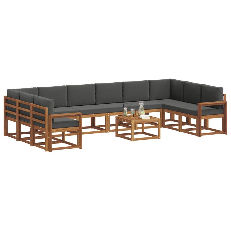 Комплект дивани с възглавница 11 pcs Натурален и Антрацит