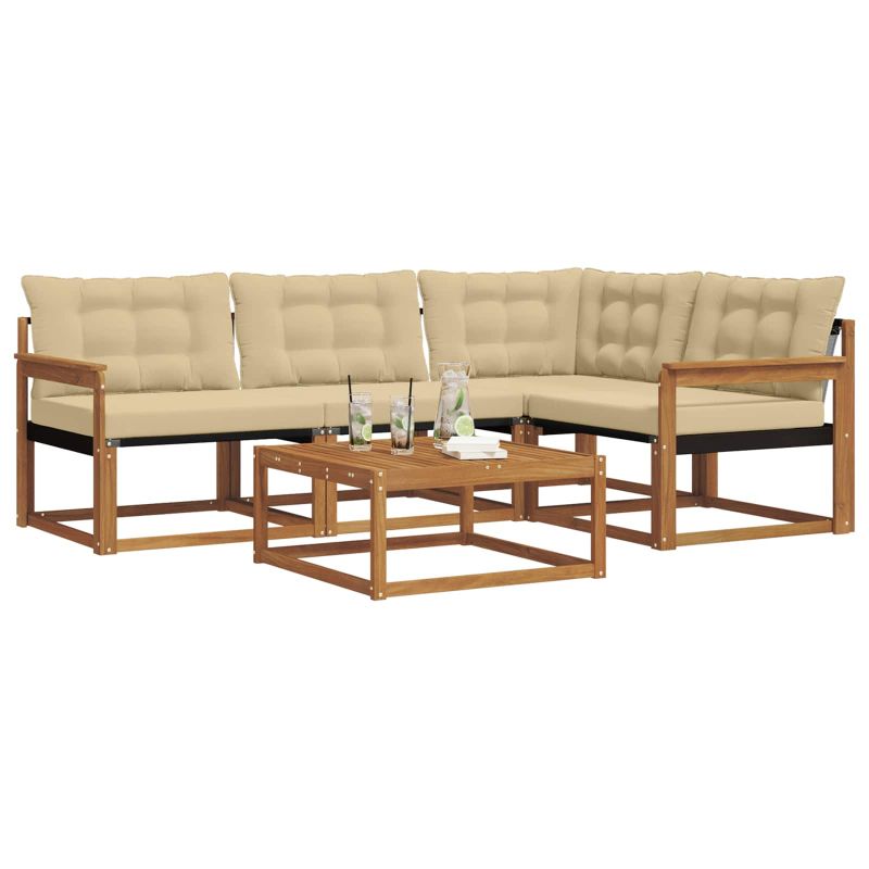 Този модерен диван комплект ето перфектното допълнение за твоето открито жилищно пространство, предлагащо стил и функционалност. С чист дизайн и здрава рамка, той допълва всяка градина или тераса. Подходящ е, когато организираш събирания или просто искаш да се насладиш на тихи моменти, защото предлага удобство и визуален акцент. Рамка от масивна акациева дървесина: Този диван комплект има здрава рамка от акациева дървесина, известна със своето качество и естествена текстура, която прави градината по-приветлива. Красивият й нюанс придава топъл вид и дълготрайност. Комфорт от текстилен материал: Текстилната материя в възглавниците и облегалките предлага комфорт и устойчивост на избледняване. Това е идеален избор за приятно сядане навън. Модулна гъвкавост: Модулната структура на дивана позволява различни конфигурации, за да пасне на всяко открито събиране. Лесно можеш да пренаредиш частите, за да създадеш уникално оформление, подходящо за всякакви групи. Компоненти, готови за времето: С метеорологично устойчиви възглавници и материали, комплектът не се влияе от влага или UV лъчи, запазвайки свежестта си. Всеки компонент е проектиран да устои на времето. Лесна поддръжка: Просто избърси с влажна кърпа, за да поддържаш чистотата. Това означава, че се грижи за него е лесно и винаги ще изглежда прекрасно.