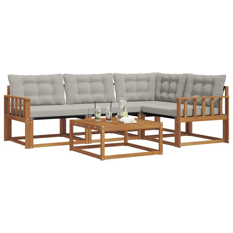Този модерен диван комплект ето перфектното допълнение за твоето открито жилищно пространство, предлагащо стил и функционалност. С чист дизайн и здрава рамка, той допълва всяка градина или тераса. Подходящ е, когато организираш събирания или просто искаш да се насладиш на тихи моменти, защото предлага удобство и визуален акцент. Рамка от масивна акациева дървесина: Този диван комплект има здрава рамка от акациева дървесина, известна със своето качество и естествена текстура, която прави градината по-приветлива. Красивият й нюанс придава топъл вид и дълготрайност. Комфорт от текстилен материал: Текстилната материя в възглавниците и облегалките предлага комфорт и устойчивост на избледняване. Това е идеален избор за приятно сядане навън. Модулна гъвкавост: Модулната структура на дивана позволява различни конфигурации, за да пасне на всяко открито събиране. Лесно можеш да пренаредиш частите, за да създадеш уникално оформление, подходящо за всякакви групи. Компоненти, готови за времето: С метеорологично устойчиви възглавници и материали, комплектът не се влияе от влага или UV лъчи, запазвайки свежестта си. Всеки компонент е проектиран да устои на времето. Лесна поддръжка: Просто избърси с влажна кърпа, за да поддържаш чистотата. Това означава, че се грижи за него е лесно и винаги ще изглежда прекрасно.