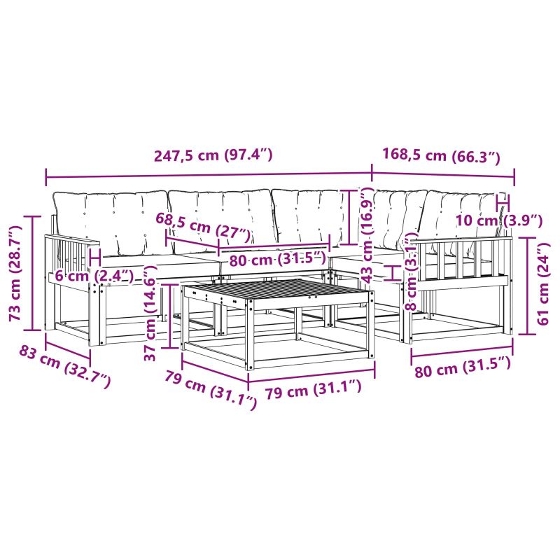 • 3 x Среден диван: 79 x 83 x 73 см (ДхШхВ)