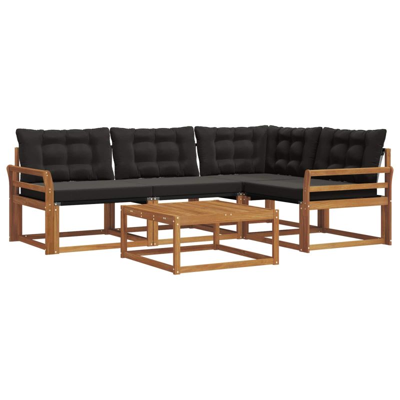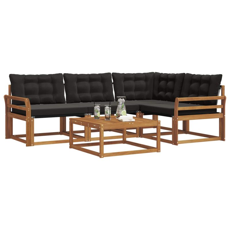 Този модерен диван комплект ето перфектното допълнение за твоето открито жилищно пространство, предлагащо стил и функционалност. С чист дизайн и здрава рамка, той допълва всяка градина или тераса. Подходящ е, когато организираш събирания или просто искаш да се насладиш на тихи моменти, защото предлага удобство и визуален акцент. Рамка от масивна акациева дървесина: Този диван комплект има здрава рамка от акациева дървесина, известна със своето качество и естествена текстура, която прави градината по-приветлива. Красивият й нюанс придава топъл вид и дълготрайност. Комфорт от текстилен материал: Текстилната материя в възглавниците и облегалките предлага комфорт и устойчивост на избледняване. Това е идеален избор за приятно сядане навън. Модулна гъвкавост: Модулната структура на дивана позволява различни конфигурации, за да пасне на всяко открито събиране. Лесно можеш да пренаредиш частите, за да създадеш уникално оформление, подходящо за всякакви групи. Компоненти, готови за времето: С метеорологично устойчиви възглавници и материали, комплектът не се влияе от влага или UV лъчи, запазвайки свежестта си. Всеки компонент е проектиран да устои на времето. Лесна поддръжка: Просто избърси с влажна кърпа, за да поддържаш чистотата. Това означава, че се грижи за него е лесно и винаги ще изглежда прекрасно.