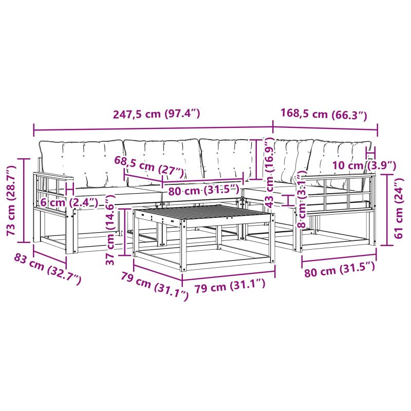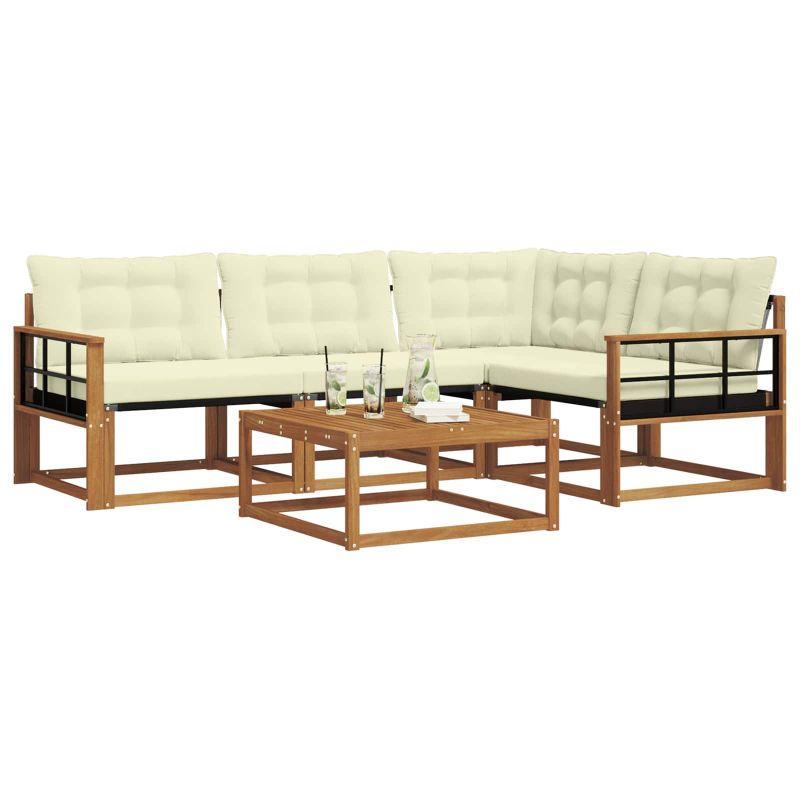 Този модерен диван комплект ето перфектното допълнение за твоето открито жилищно пространство, предлагащо стил и функционалност. С чист дизайн и здрава рамка, той допълва всяка градина или тераса. Подходящ е, когато организираш събирания или просто искаш да се насладиш на тихи моменти, защото предлага удобство и визуален акцент. Рамка от масивна акациева дървесина: Този диван комплект има здрава рамка от акациева дървесина, известна със своето качество и естествена текстура, която прави градината по-приветлива. Красивият й нюанс придава топъл вид и дълготрайност. Комфорт от текстилен материал: Текстилната материя в възглавниците и облегалките предлага комфорт и устойчивост на избледняване. Това е идеален избор за приятно сядане навън. Модулна гъвкавост: Модулната структура на дивана позволява различни конфигурации, за да пасне на всяко открито събиране. Лесно можеш да пренаредиш частите, за да създадеш уникално оформление, подходящо за всякакви групи. Компоненти, готови за времето: С метеорологично устойчиви възглавници и материали, комплектът не се влияе от влага или UV лъчи, запазвайки свежестта си. Всеки компонент е проектиран да устои на времето. Лесна поддръжка: Просто избърси с влажна кърпа, за да поддържаш чистотата. Това означава, че се грижи за него е лесно и винаги ще изглежда прекрасно.