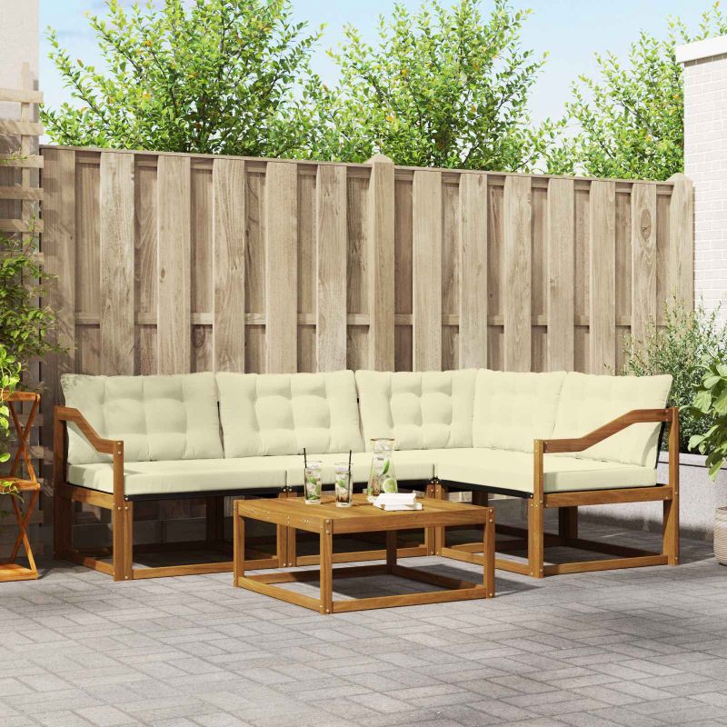 Този модерен диван комплект ето перфектното допълнение за твоето открито жилищно пространство, предлагащо стил и функционалност. С чист дизайн и здрава рамка, той допълва всяка градина или тераса. Подходящ е, когато организираш събирания или просто искаш да се насладиш на тихи моменти, защото предлага удобство и визуален акцент. Рамка от масивна акациева дървесина: Този диван комплект има здрава рамка от акациева дървесина, известна със своето качество и естествена текстура, която прави градината по-приветлива. Красивият й нюанс придава топъл вид и дълготрайност. Комфорт от текстилен материал: Текстилната материя в възглавниците и облегалките предлага комфорт и устойчивост на избледняване. Това е идеален избор за приятно сядане навън. Модулна гъвкавост: Модулната структура на дивана позволява различни конфигурации, за да пасне на всяко открито събиране. Лесно можеш да пренаредиш частите, за да създадеш уникално оформление, подходящо за всякакви групи. Компоненти, готови за времето: С метеорологично устойчиви възглавници и материали, комплектът не се влияе от влага или UV лъчи, запазвайки свежестта си. Всеки компонент е проектиран да устои на времето. Лесна поддръжка: Просто избърси с влажна кърпа, за да поддържаш чистотата. Това означава, че се грижи за него е лесно и винаги ще изглежда прекрасно.