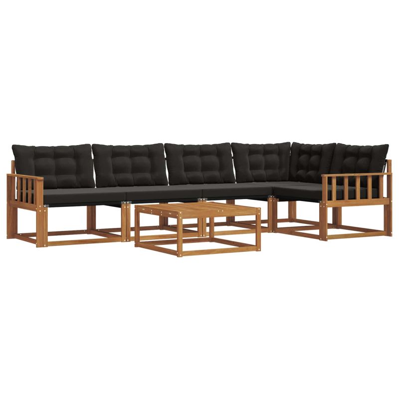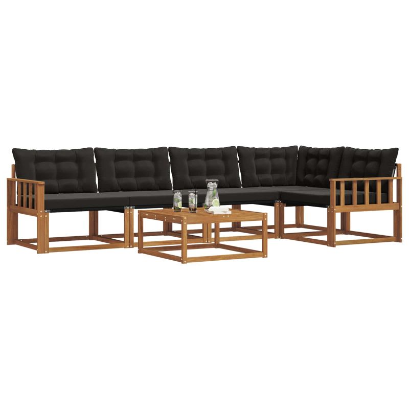 Комплектът за външни мебели съчетава стил и функционалност, създавайки впечатляваща централна част за всяка градина или тераса. С модерен дизайн и чисти линии, той добавя елегантност и е идеален за релакс и социални събирания на открито. Направен е изцяло от масивна акациева дървесина, което осигурява дълготрайност и привлекателен изглед, подходящ за тези, които искат както практичност, така и стил в откритите мебели. Издръжлива масивна акациева дървесина: Изработен от масивна акациева дървесина, този комплект за открито е супер издръжлив и устойчив на времето. Здравата конструкция предоставя стабилност и дълготрайност, а топлият естествен цвят обогатява градината. Издръжлив дизайн: Комплектът мебели за открито разполага с лакирана повърхност, която добавя допълнителен слой защита срещу слънце, дъжд и външни условия. Полираното покритие помага да запази външния вид и функционалността, осигурявайки дълготрайна издръжливост. Компоненти и дизайн: Всеки елемент е проектиран за стил и функция. Подкрепящите елементи добавят комфорт, докато свързаният дизайн създава визуално хармонична композиция, която е подходяща за различни събития на открито. Комфорт и гъвкавост: Модулният дизайн позволява различни конфигурации, за да отговори на нуждите на пространството. Идеален е за релакс, социализация или спокойни моменти с книга, комплектът лесно се наглася на всяка обстановка. Лесна поддръжка: За да поддържате мебелите в отлично състояние, просто избърсвайте с влажна кърпа и не употребявайте агресивни препарати. Редовната грижа запазва външния вид и удължава живота на мебелите.