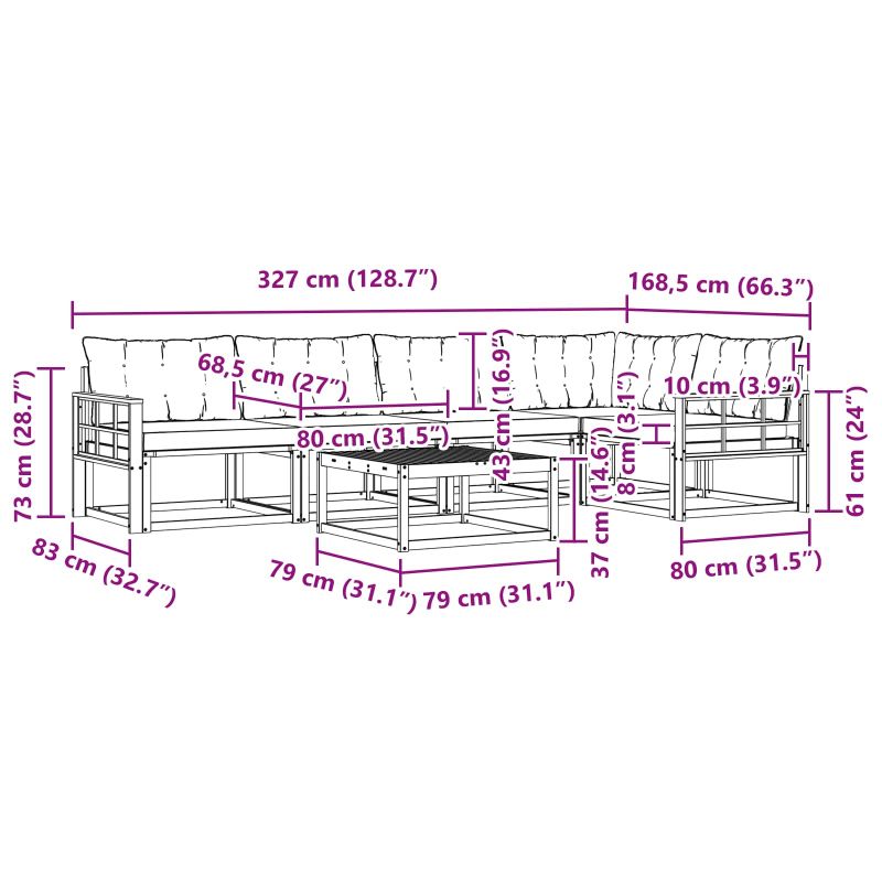 Комплектът за външни мебели съчетава стил и функционалност, създавайки впечатляваща централна част за всяка градина или тераса. С модерен дизайн и чисти линии, той добавя елегантност и е идеален за релакс и социални събирания на открито. Направен е изцяло от масивна акациева дървесина, което осигурява дълготрайност и привлекателен изглед, подходящ за тези, които искат както практичност, така и стил в откритите мебели. Издръжлива масивна акациева дървесина: Изработен от масивна акациева дървесина, този комплект за открито е супер издръжлив и устойчив на времето. Здравата конструкция предоставя стабилност и дълготрайност, а топлият естествен цвят обогатява градината. Издръжлив дизайн: Комплектът мебели за открито разполага с лакирана повърхност, която добавя допълнителен слой защита срещу слънце, дъжд и външни условия. Полираното покритие помага да запази външния вид и функционалността, осигурявайки дълготрайна издръжливост. Компоненти и дизайн: Всеки елемент е проектиран за стил и функция. Подкрепящите елементи добавят комфорт, докато свързаният дизайн създава визуално хармонична композиция, която е подходяща за различни събития на открито. Комфорт и гъвкавост: Модулният дизайн позволява различни конфигурации, за да отговори на нуждите на пространството. Идеален е за релакс, социализация или спокойни моменти с книга, комплектът лесно се наглася на всяка обстановка. Лесна поддръжка: За да поддържате мебелите в отлично състояние, просто избърсвайте с влажна кърпа и не употребявайте агресивни препарати. Редовната грижа запазва външния вид и удължава живота на мебелите.