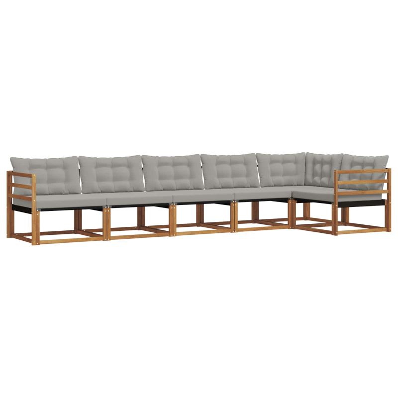 Този модерен комплект дивани за открито е съчетание от простота и функционалност и е перфектен за градината или терасата. Изработен от масивно акациево дърво и текстил, той излъчва съвременен стил и е много удобен. Чудесен избор за социални събирания, удобно побира гости и семейство, като прави всеки открит момент незабравим. Масивна акациева дървесина: Здравото акациево дърво предлага стил и устойчивост, което е идеално за външни условия. Този материал гарантира дълготрайност и запазва елегантния си вид независимо от времето. Възглавница, устойчива на времето: Външната възглавница е направена от водоустойчива тъкан, която предлага комфорт без да губи дълготрайност. Интегрирано памучно пяно за допълнително удобство, идеално за следобеди на слънце. Подкрепящ дизайн: Облегалките и практичните подлакътници предлагат комфорт, който позволява да се отпуснете напълно. Перфектен за социализиране или просто да се наслаждавате на спокойни моменти. Модулна подредба: Този комплект предлага различни конфигурации, подходящи за всяко пространство и събиране. Идеален е за динамични парти подредби и честото хостване на гости. Лесна поддръжка: Съобразен с забързания живот, повърхността се почиства лесно, а възглавниците имат цип и се свалят без усилие, което прави поддръжката лесна.