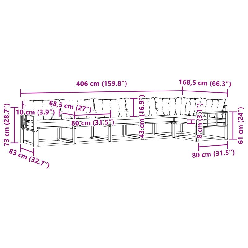 Този модерен комплект дивани за открито е съчетание от простота и функционалност и е перфектен за градината или терасата. Изработен от масивно акациево дърво и текстил, той излъчва съвременен стил и е много удобен. Чудесен избор за социални събирания, удобно побира гости и семейство, като прави всеки открит момент незабравим. Масивна акациева дървесина: Здравото акациево дърво предлага стил и устойчивост, което е идеално за външни условия. Този материал гарантира дълготрайност и запазва елегантния си вид независимо от времето. Възглавница, устойчива на времето: Външната възглавница е направена от водоустойчива тъкан, която предлага комфорт без да губи дълготрайност. Интегрирано памучно пяно за допълнително удобство, идеално за следобеди на слънце. Подкрепящ дизайн: Облегалките и практичните подлакътници предлагат комфорт, който позволява да се отпуснете напълно. Перфектен за социализиране или просто да се наслаждавате на спокойни моменти. Модулна подредба: Този комплект предлага различни конфигурации, подходящи за всяко пространство и събиране. Идеален е за динамични парти подредби и честото хостване на гости. Лесна поддръжка: Съобразен с забързания живот, повърхността се почиства лесно, а възглавниците имат цип и се свалят без усилие, което прави поддръжката лесна.