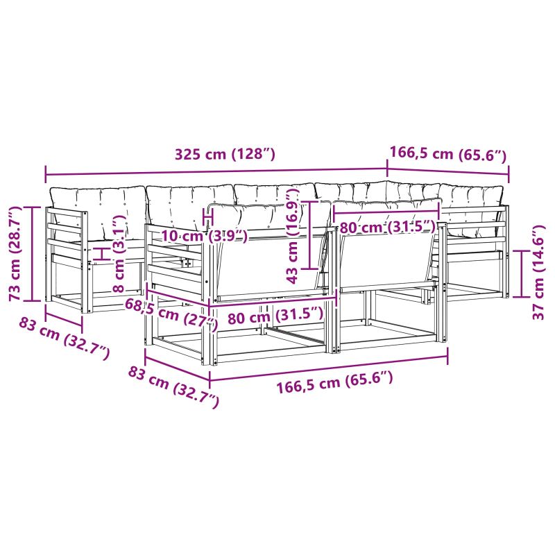 • 6 x Среден диван: 79 x 83 x 73 см (ДxШxВ)