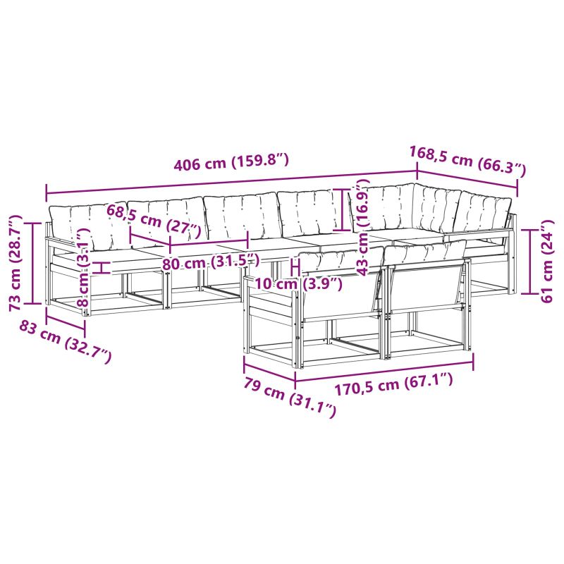 Комплект дивани за открито 8 pcs Естествено и светло сиво