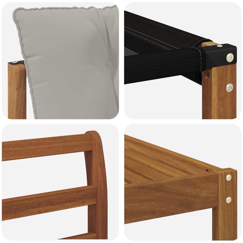 Този комплект за открито съчетава стил и практичност, добавяйки модерен акцент в градината или на терасата. Изработен е от здрава акациева дървесина, която гарантира дълготрайност и естетичен вид, идеален за тези, които ценят качеството в мебелите за открито. Издръжлива акациева дървесина: Комплектът е направен от масивна акациева дървесина, която е много устойчива и надеждна дори при лошо време. Осигурява стабилност и е чудесна добавка за всяка градина или тераса. Устойчив на времето: Лакираната повърхност предлага допълнителна защита от природни влияния, като осигурява дълготрайна издръжливост. Дизайн и компоненти: Всеки елемент е стилно проектиран, за да осигури комфорт и уют в открито пространство. Комфорт и гъвкавост: Модулният дизайн позволява адаптиране за различни видове мероприятия, от забавления до момент на релаксация. Лесна поддръжка: Просто почиствайте с влажна кърпа, а възглавниците с ципове позволяват лесно сваляне за пране.