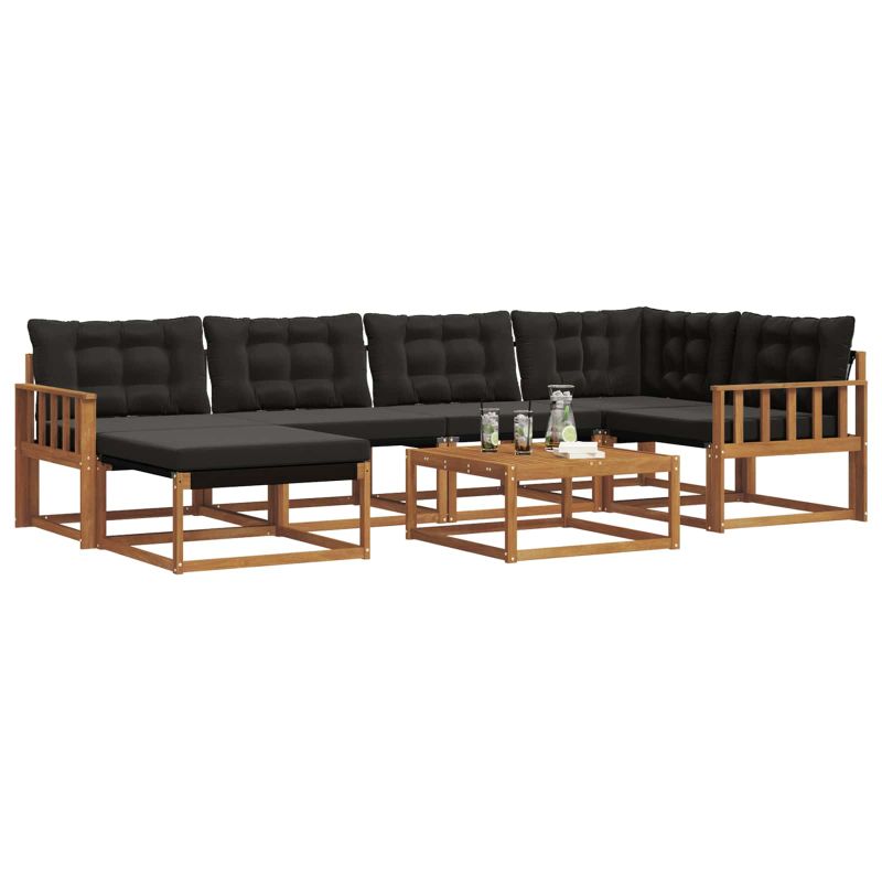 Този комплект дивани за градината елегантно променя всяко място навън, съчетавайки стил с устойчивост. Проектиран за външна употреба, той удобно събира много хора и става акцент на всяко събиране. Масивна акациева дървесина: Този материал не само красиво изглежда, но и е супер здрав, дори при различни метеорологични условия. Дървесните тонове идеално пасват на природата, правейки го вечна част от вашата градина или тераса. Устойчивостта му на износване го прави идеален за животни и за спокойно релаксиране. Интегрирани компоненти: Диванът има удобни подлакътници и здрав корпус, изработен от масивна акациева дървесина. Гръбначната част от текстил и дебелите възглавници осигуряват комфорт. Дори подвижните седални възглавници с цип дават възможност за лесно обслужване и перфектен комфорт. Функционални характеристики: Проектиран да устои на външните условия, този комплект е устойчив на избледняване и лесен за почистване, така че винаги да изглежда свеж. Облегалката предлага правилна стойка, идеална за продължително отдих. Удобните подлакътници също допринасят за комфортното излежаване, позволявайки на всеки да релаксира без притеснения. Многофункционална употреба: Перфектен за градински комплекти, този диван се приспособява за всякакви външни среди. Ползвайте го за забавления с гости, чайните партита или чаша вино в тиха вечер. Дизайнът му отлично допълва съвременните пространства, правейки го многофункционален вариант за стилно отдих на открито. Лесна поддръжка: За да запазите прекрасния му вид, започнете с влажна кърпа. Тази лесна поддръжка държи вашия комплект свеж и поканващ през всеки сезон. Лесно защитете инвестицията си и се наслаждавайте на дълготраен приятел в градината.