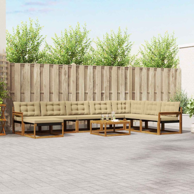 Този елегантен комплект за открито е чудесен за подобряване на атмосферата в градината или на терасата. Със съвременен стил и естествена дървесна текстура, той прекрасно се вписва в растителността, създавайки уютно местенце за почивка или забавление. Красивият кафяв нюанс, който не избледнява, добавя нотка изтънченост и ще остане акцент в откритото ви пространство за дълго време. Материали: Направен от масивно акациево дърво, този комплект за открито съчетава елегантно кафяво покритие с дълготрайност и стил. Изборът на акация осигурява устойчивост на времето, като запазва красотата на дървесината за дълго. Включени компоненти: Комплектът предлага много място за сядане, с пухкави възглавници и сваляеми калъфи. Подлакътниците и удобната облегалка от текстил предоставят допълнителен комфорт за продължителна употреба. Функции / Функционалност / Дизайн: Мебелите са проектирани с устойчив на избледняване дизайн, който осигурява дълготрайно естетическо влияние. Дебелите възглавници предлагат удобно сядане, а лесната за почистване повърхност прави поддръжката бърза и лесна. Препоръчителни употреби: Идеален за открити пространства като градини и тераси, комплектът е подходящ за събирания или просто за приятно прекарано време. Модерният му вид допълва всяко обкръжение и е подходящ за различни социални активности. Грижа и поддръжка: За да запазите мебелите в отлично състояние, избърсвайте ги с влажна кърпа. Тази проста поддръжка ще ги поддържа привлекателни и готови за всякакви веселби или спокойни моменти за отдих, когато е необходимо.