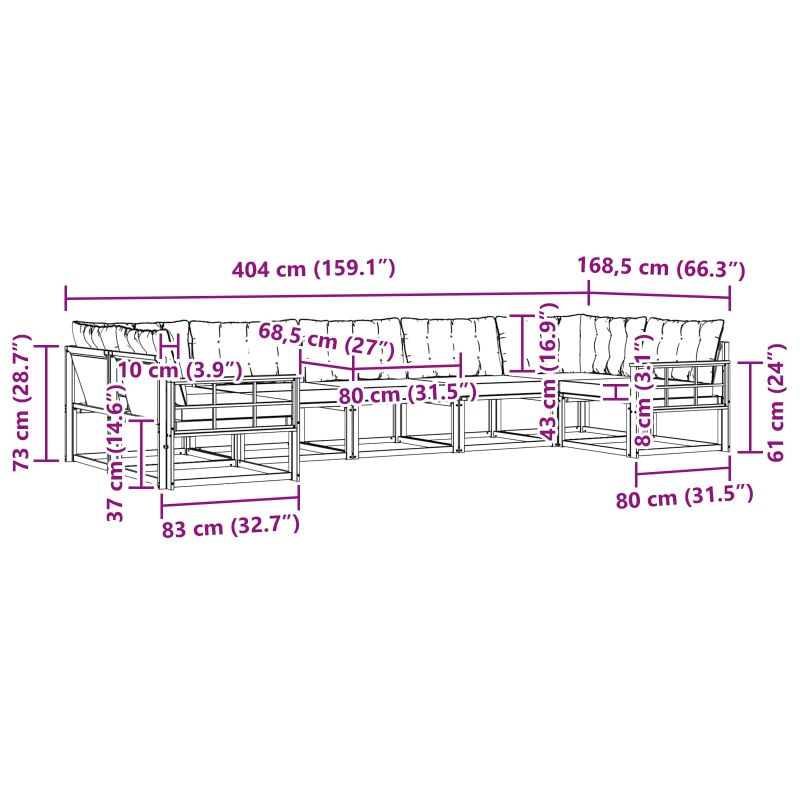 Комплектът за външна мебел съчетава стил и практичност, създавайки впечатляващ фокус за всяка градина или тераса. Неговият модерен дизайн с чисти линии и минималистични детайли придава елегантност и идеално последва откритата релаксация и социалната активност. Направен е от масивна акациева дървесина, което гарантира дълготрайност и привлекателност, идеален за всички, търсещи практичност и стил в мебелите навън. Издръжлива масивна акациева дървесина: Този комплект е супер устойчив и идеален за всякакви условия на открито. Здравата конструкция осигурява надеждност и стабилност, а топлият естествен цвят пасва на всяка градина или тераса. , Дизайн устойчив на времето: С лакирана повърхност, която добавя допълнителен писък защита от слънце и дъжд, комплектът е проектиран да запази и вида, и функцията си, осигурявайки дълготрайна издръжливост. , Компоненти и дизайн: Всеки детайл – от подлакътниците до облегалките – е направен с мисъл за стил и удобство. С поддържащи функции за комфорт и хармоничност, комплектът е идеален за различни поводи на открито. , Комфорт и многофункционалност: Модулният дизайн дава възможност за различни конфигурации според пространството и нуждите. Идеален е за релаксация или социални събирания, и е готов да адаптира всяка външна среда. , Лесна поддръжка и грижа: Поддържай мебелите в отлично състояние, като избършеш с влажна кърпа и избягваш остри препарати. Редовната грижа ще удължи живота на мебелите.