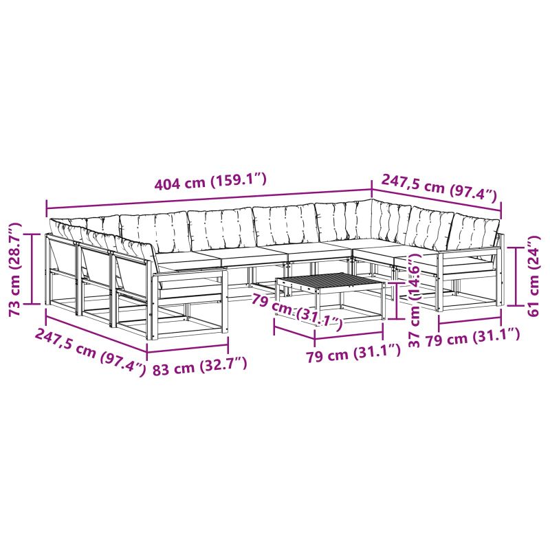 • 7 x Среден диван: 79 x 83 x 73 см (ДxШxВ)