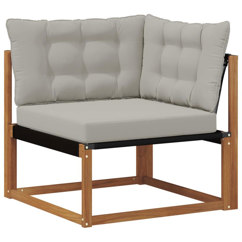 Комплектът за външно ползване е стилен и функционален, създаващ акцент в градината или на терасата. Модерният му дизайн с чисти линии добавя елегантност и е подходящ за социални събирания. Направен от масивна акациева дървесина, той е устойчив и дълготраен избор за всеки, който търси качество и стил в мебелите за открито. Издръжлива масивна акациева дървесина: Здравата конструкция на този комплект осигурява устойчивост на времето и надеждност, а красивият естествен тон допълва всяка градина. Устойчив дизайн на времето: Лакираната повърхност предлага защита срещу слънце, дъжд и други атмосферни влияния. Тя помага да запазиш както външния вид, така и функционалността на мебелите. Компоненти и дизайн: Всеки елемент е проектиран с оглед на стил и комфорт. Кохезивният дизайн гарантира, че комплектът изглежда добре на всяко събиране. Комфорт и многофункционалност: Модулният дизайн позволява различни конфигурации. Идеален за релаксация или забавление с приятели, той се адаптира изключително лесно към всяка ситуация. Лесна поддръжка: Поддържайте мебельте в отлично състояние, просто избърсвайте с влажна кърпа и избягвайте агресивни почистващи средства.