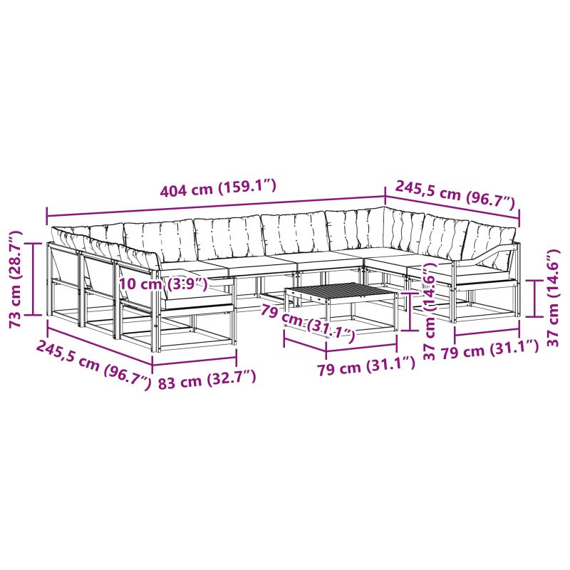 Комплект дивани за открито 10 pcs Натурален и Крема